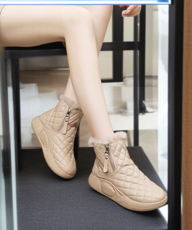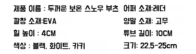 ● 겨울철에도 따뜻하게! 고급 융털 안감으로 발 전체를 포근하게 감싸주어 한파에도 걱정 없이 착용할 수 있습니다. ● 통굽 디자인으로 키높이 효과와 안정적인 착화감을 동시에 제공하며, 장시간 착용에도 편안함을 느낄 수 있습니다. ● 미끄럼 방지 아웃솔로 눈길이나 빙판길에서도 안전하게 활동할 수 있어 겨울철 야외 활동에 최적화된 부츠입니다. ● 캐주얼한 디자인으로 다양한 겨울 코디에 쉽게 매치되며, 데일리룩부터 외출복까지 활용도가 높은 아이템입니다. ● 내구성 좋은 소재와 꼼꼼한 마감처리로 오랜 기간 변형 없이 사용할 수 있어 경제적인 겨울 신발 선택입니다.